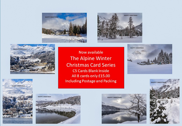 Eight winter scenes taken in the Swiss Alps as A5 Christmas cards. Blank on the inside for your own greetings. Made from 300gsm TruCard stock complete with white 100gsm envelope and individually bagged. Price includes Postage and Packaging to UK addresses